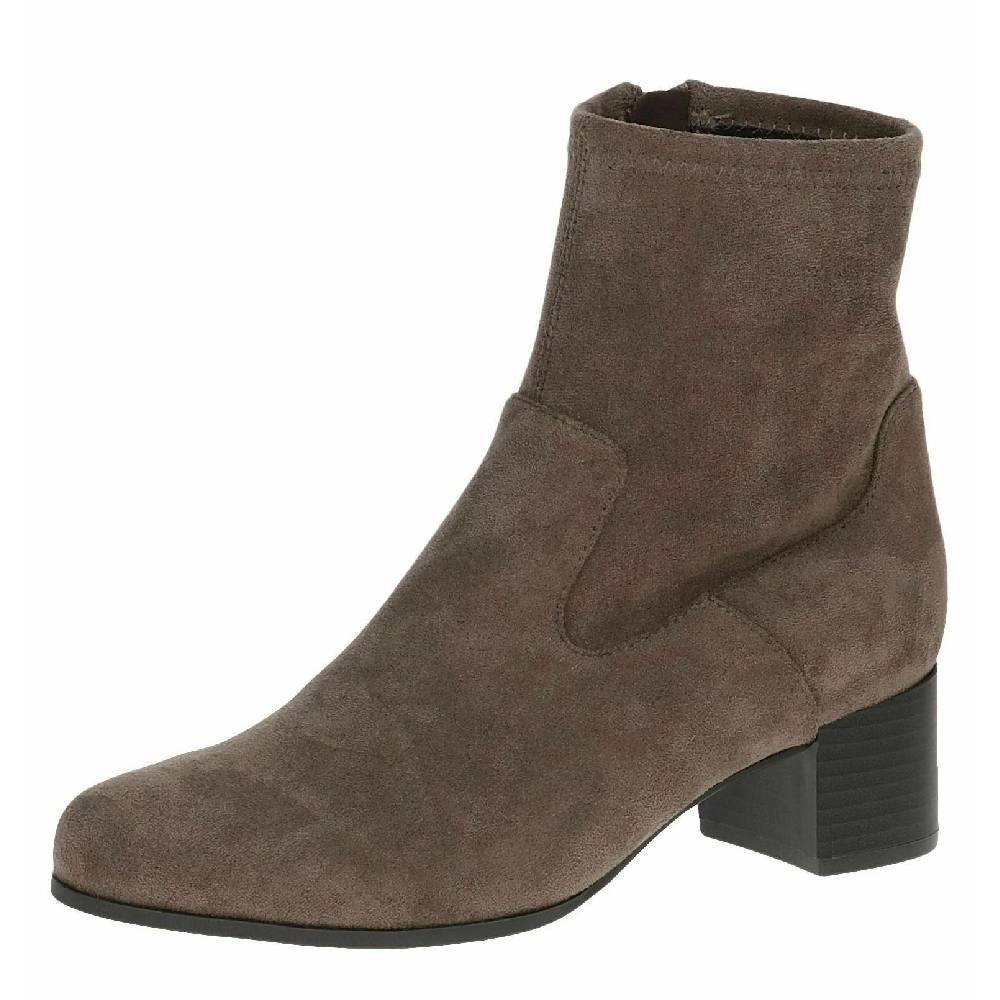 Cafe/ Taupe faux suede sock boots on a low 5cm block heel. This style is a “G” width fit which offers a rommier fit.