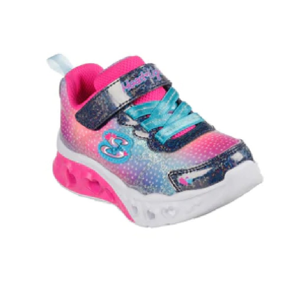 Brighten your steps with heart-filled style wearing Skechers Flutter Heart Lights – Simply Love. This lightweight slip-on features an ombre print fabric upper with synthetic glitter heart overlay and a fun 3-D heart-sculpted light-up midsole.