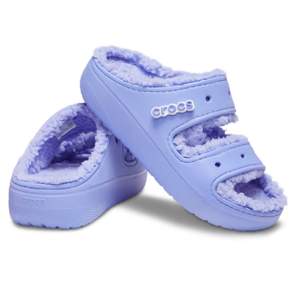 The Classic Cozzzy Sandal features a soft, fuzzy liner, style-forward heightened outsoles and two upper straps that offer enhanced foot security. Seven holes on each sandal allow for maximum personalization with Jibbitz™ charms, while Croslite foam construction keeps them light and easy to wear.